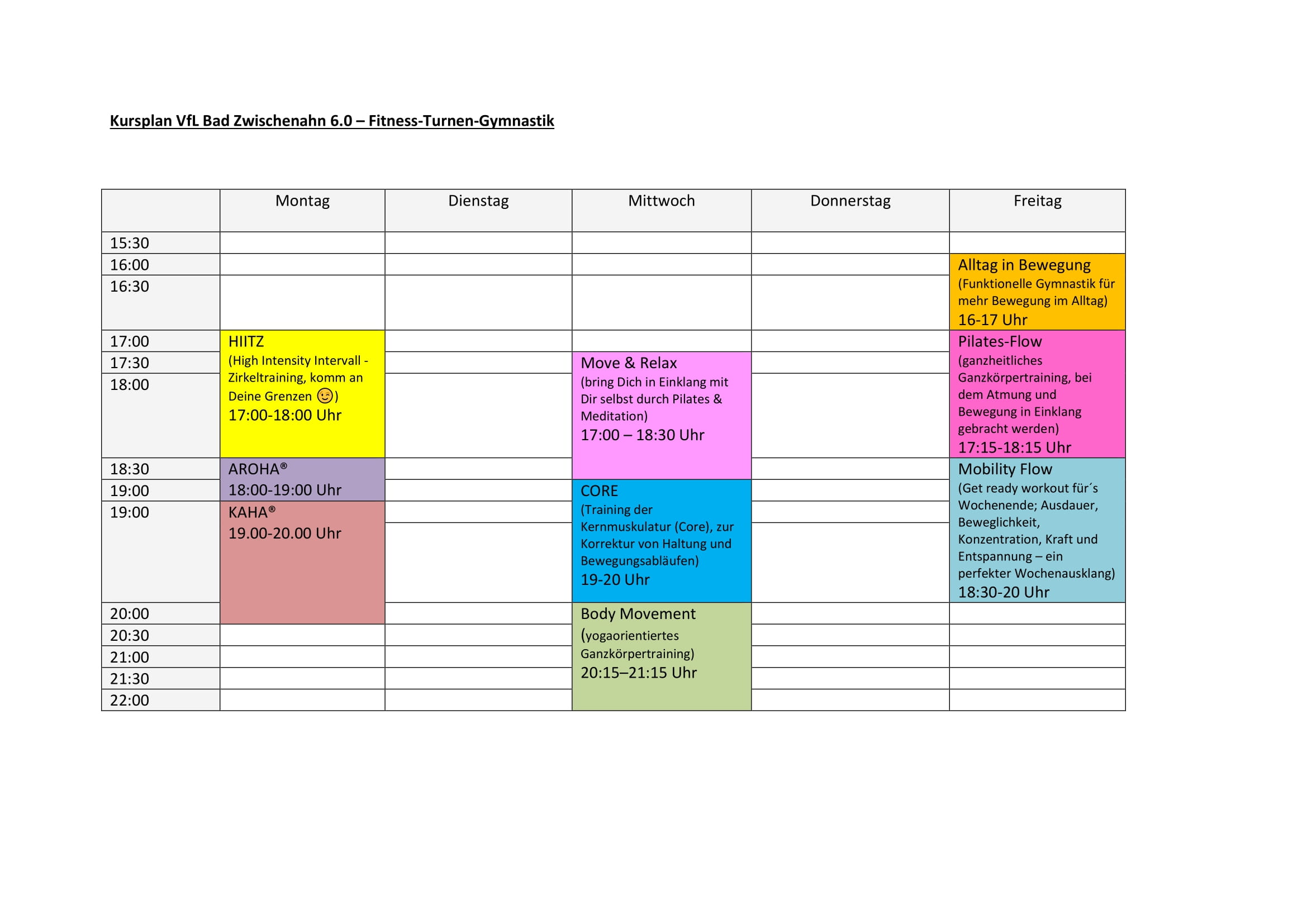 Aroha richtet sich an Kurseinsteiger, Sportanfänger, Wiedereinsteiger.